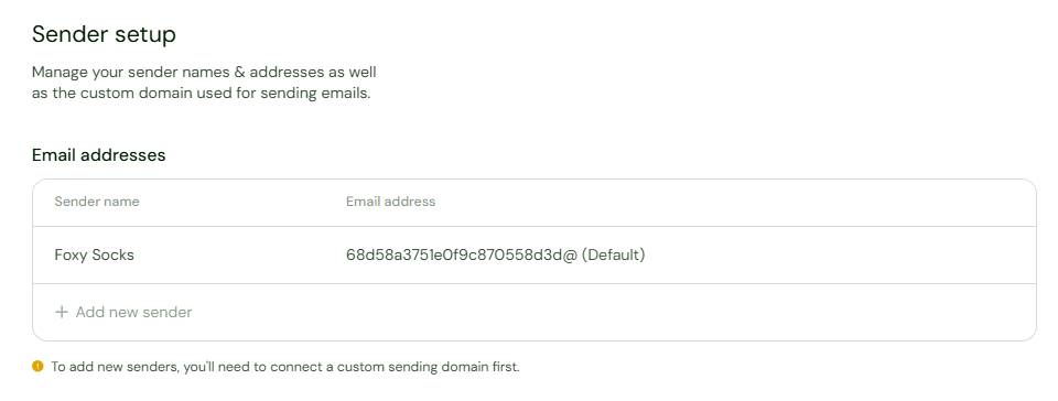 Select Sender setup