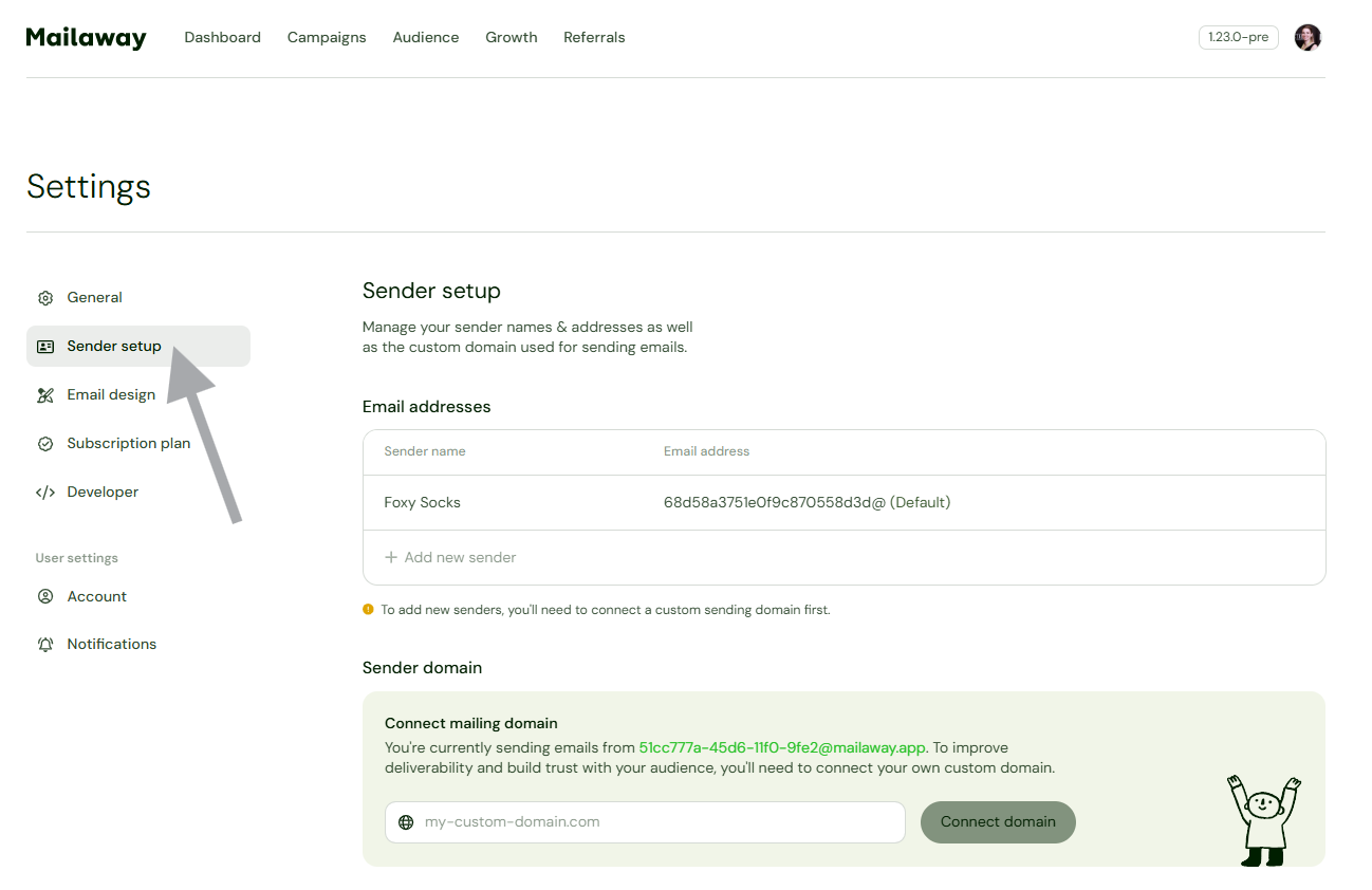 Connecting a domain will allow you to create and use different sending addresses, other than your Mailaway sending address.